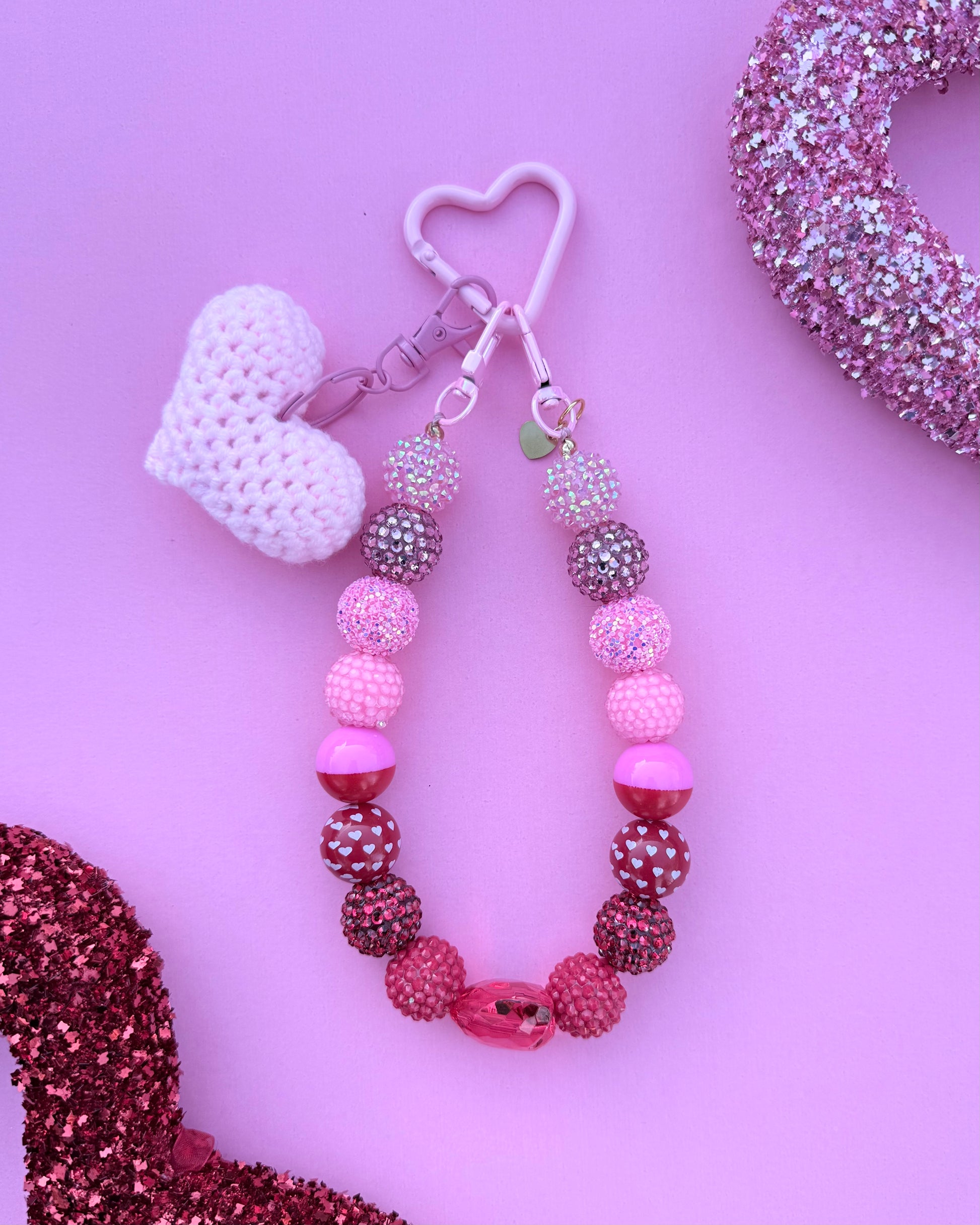 One-of-a-kind handcrafted charm to sweeten and embellish the look of your phone or bag. Bonus crochet heart included.
